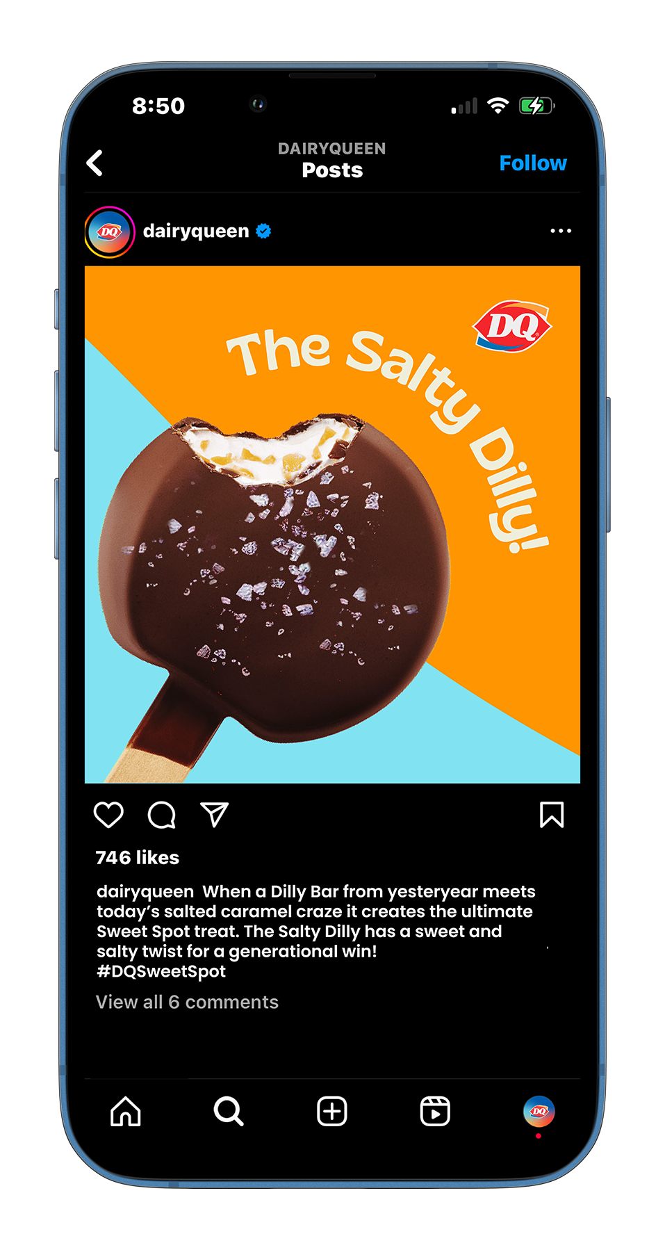 Leverage Instagram to send clues to Gen Z. Let's surprise them and send them to a Boomer favorite location—a Sweet Spot where they have fun over our Blizzards.